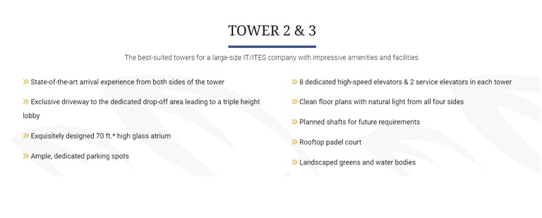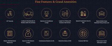 It is thoughtfully and spaciously designed with commercial spaces in a different sizes and layouts. A complete package having office space, showrooms, multiplexes, lush lawns, elevators and high-speed elevators, children's play areas, dedicated entertainment, a Food court, ample parking space and many more other attractions.