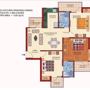3bhk 1260 Sq.Ft Price on Request